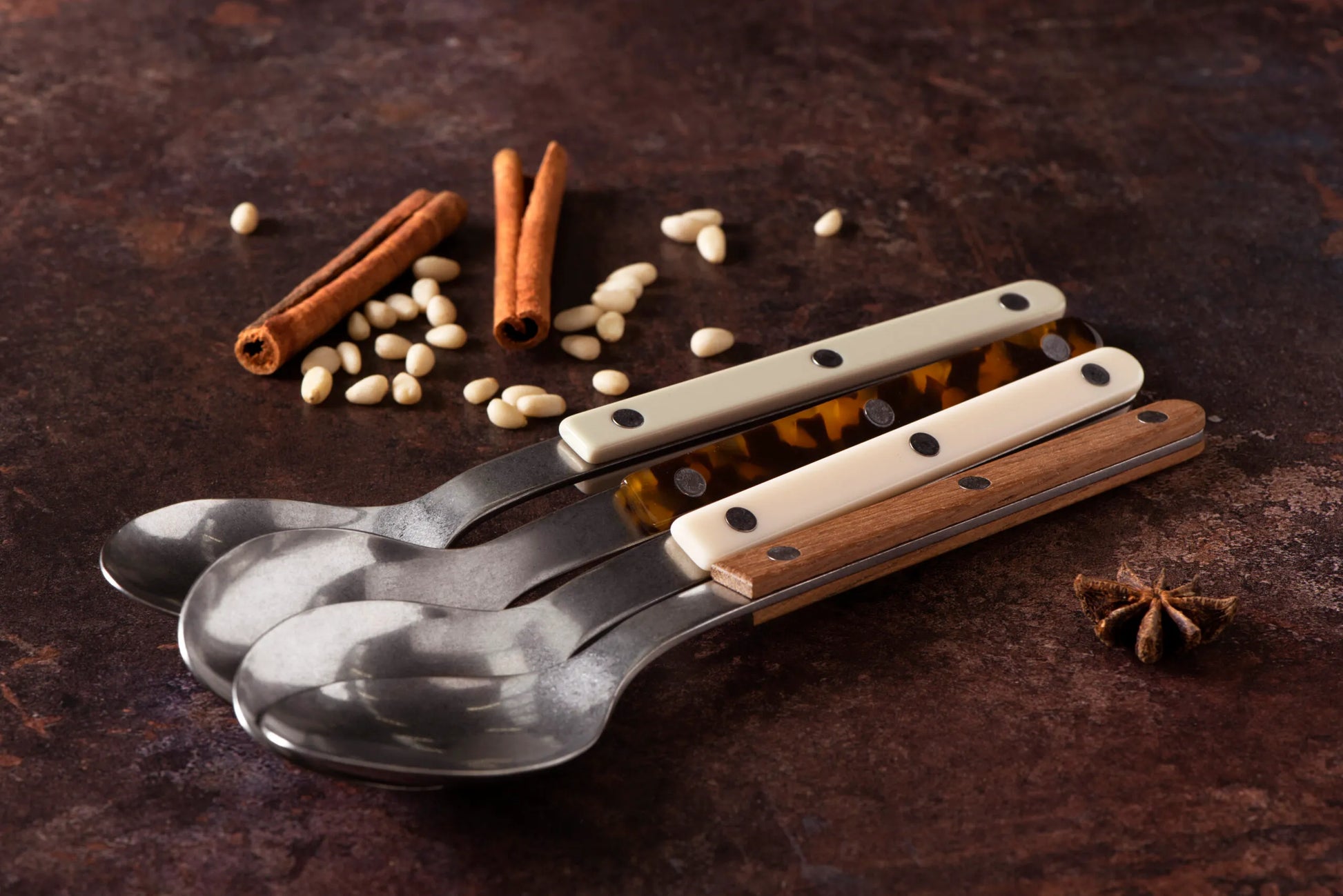 With the Bistrot collection, Sabre was inspired by some of our favourite places: restaurants, terraces and cafés. When designing this cutlery we wanted to faithfully capture the atmosphere while adding a modern touch: the styling is simple, the rivets are visible, while the colours and materials stand out nicely. From red to blue, not forgetting the superb materials with horn or tortoise effects. We’re sure you’ll enjoy this collection, which is designed to be both traditional and contemporary at the same time.