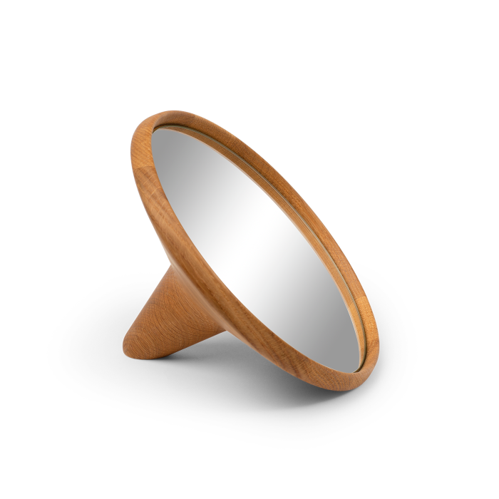 Satellite Mirror is a simple and beautiful mirror in oak wood. Satellite Mirror gives you an aesthetic mirror in both shape and expression. In addition, the mirror comes with the unique advantage that it can easily be moved around in the house. In this way, you can choose where you want to put on makeup and are not committed to one place. Satellite Mirrors are obvious choices for the bedroom and the bathroom and in the hallway as decoration. The fact that the mirrors are joined by several pieces of oak wood will make them age beautifully with time and create a unique play of patterns in the wood.